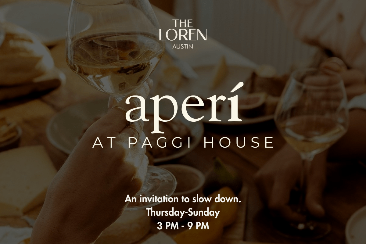 Opening Thursday, March 19, Aperí—pronounced “Ah-PEH-ree”—will operate from 3 PM to 9 PM. Thursday through Sunday on Paggi House’s patio, offering a pre-dinner refuge where guests are invited to slow down and open a bottle in a relaxed environment.